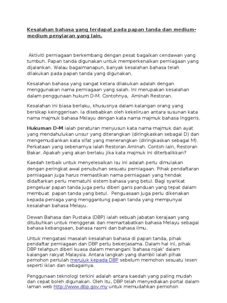 Laporan Analisis Kesalahan Bahasa Di Premis Awam Pdf